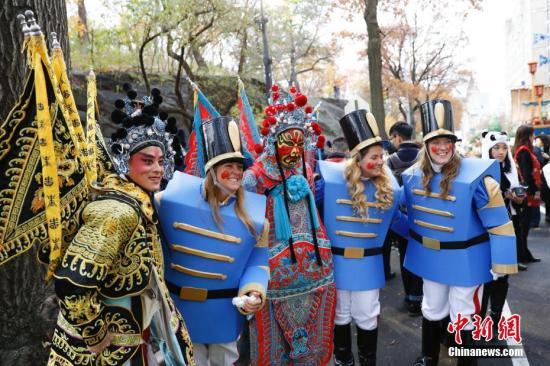 当地时间11月24日,第90届梅西百货感恩节大游行在美国纽约举行。这是美国历史最悠久、最有影响力的感恩节盛典。中新社记者 廖攀 摄