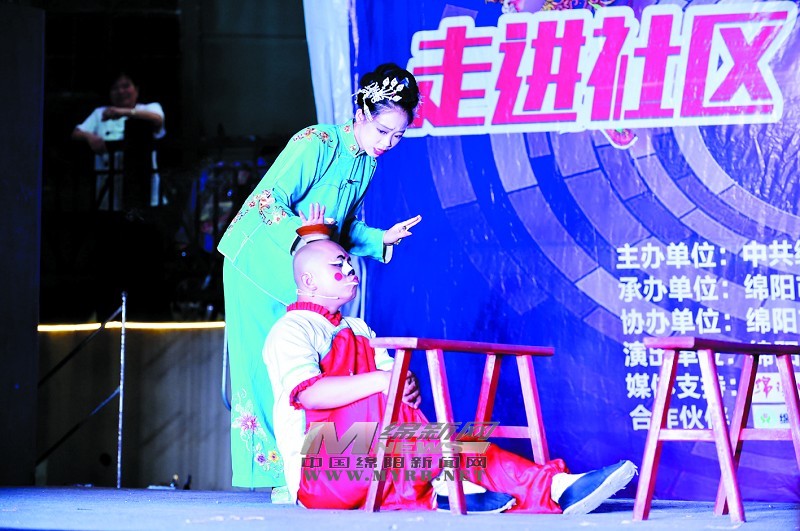 昨(18)日,由市委宣传部、市文广新局主办的“绵州大舞台”惠民演出第四季第38场走进涪城区西河路社区。绵阳市艺术剧院的演员们在盛夏之际为社区居民带来了一场经典的川剧折子戏文化大餐。