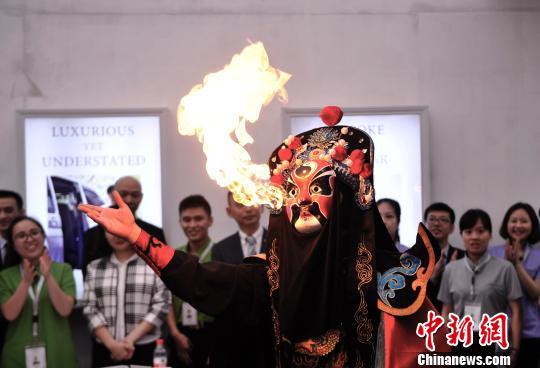 图为演员正在展示变脸吐火绝技。 陈超 摄