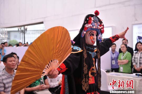 图为川剧演员正在展示变脸环节。 陈超 摄