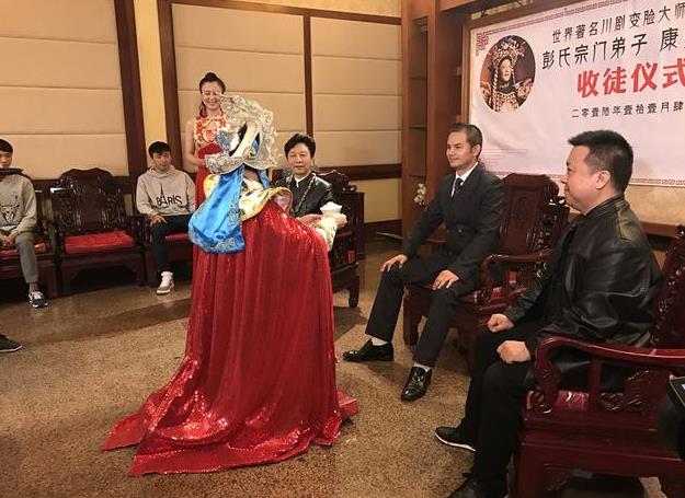 新浪娱乐讯 11月4日上午,歌手平安[微博]现身四川成都川剧院博物馆,正式拜川剧演员“变脸娃”康勇为师,学习川剧艺术及川剧变脸。据悉,这是继刘德华2000年向彭登怀学习川剧变脸之后,时隔16年后又一位歌手学习川剧变脸。而在今天平安的拜师仪式上,彭登怀这位变脸大师也到现场见证。