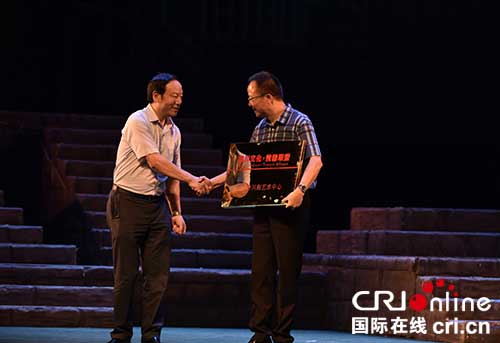 国际在线四川频道报道(刘江):一段不该忽略历史片段、一种不能的忘却爱国情怀。爱国主义精神与信念不应是某一时代的产物,而应是无论何时何处都应该存在的时代精神。7月8日晚,自贡市川剧艺术中心携川剧《还我河山》,高举民族精气神的火把,点燃了蓉城百姓内心的爱国之焰,同时,自贡市川剧艺术中心也被正式授予了“四川文化·院团联盟”成员单位,四川省川剧院院长陈淳为自贡市川剧艺术中心正式授牌。