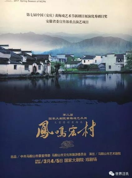 大型原创黄梅戏《凤鸣宏村》于2017年3月4日-5日在国家大剧院演出。这是马鞍山市文艺精品首次走进国家最高艺术殿堂,将进一步提升马鞍山市的影响力和知名度。