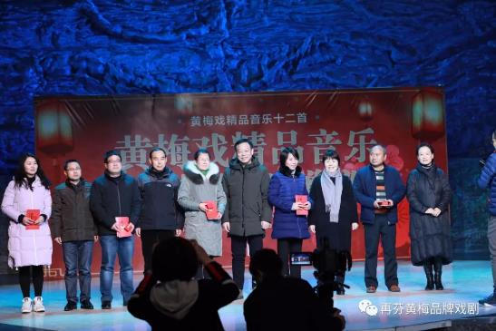 市文广新局副局长潘功喜首先上台致辞,他说:“制作黄梅戏经典音乐十二首,是我市戏曲进校园的一个项目。希望广大师生和戏曲工作者充分利用全国戏曲进校园的大好形势,继续将黄梅戏艺术这张城市名片发扬光大,实现戏曲普及与学生艺术教育的双赢。”