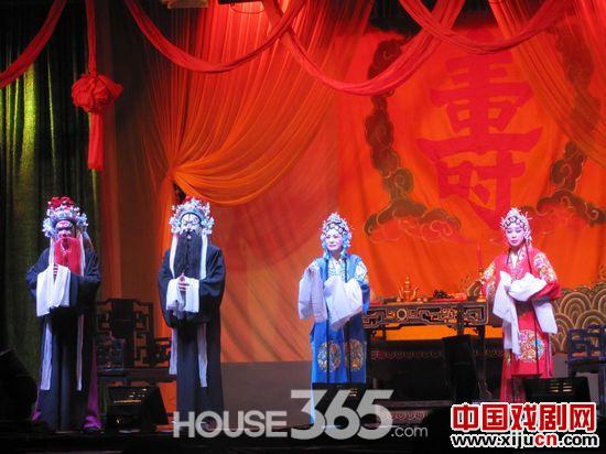 7点整表演正式开始,那时那地,西夏向宋发动攻击,忠勇的杨宗保率兵迎战不敌,未几更传来战死消息。恰巧当晚杨府内张灯结彩,一片喜气洋洋,正是老太君六十寿诞之日。佘太君满脸微笑坐在高堂之上接受众儿媳拜寿,只有穆桂英强忍内心丧夫之痛,面无笑颜。随着剧情发展,佘太君寿辰变成杨宗保忌辰,母亲失去了儿子、妻子失去了丈夫、儿子失去了父亲,戏剧的悲剧色彩达到顶峰------