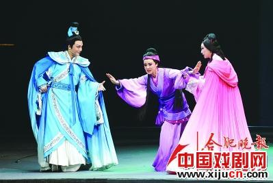 又一场大戏开演在即。这是一台新编黄梅戏古装剧《小乔初嫁》,讲的是一个近两千年前的传奇故事:赤壁大战前夕,曹操为了达到扫清东吴的目的,使用了一出离间计,先是送信称自己将挥师南下,要与东吴孙权“会猎江东”,又遣使者过江捎口信提出交换条件:若想免于战火,除非大都督周瑜愿将新婚妻子小乔送至曹营,曹操便可罢兵,企图以此计激怒周瑜,同时使东吴这边军心混乱。小乔闻讯后,为稳定军心并揭露曹操计谋,只身过江来到曹操营中,局势顿时扭转……