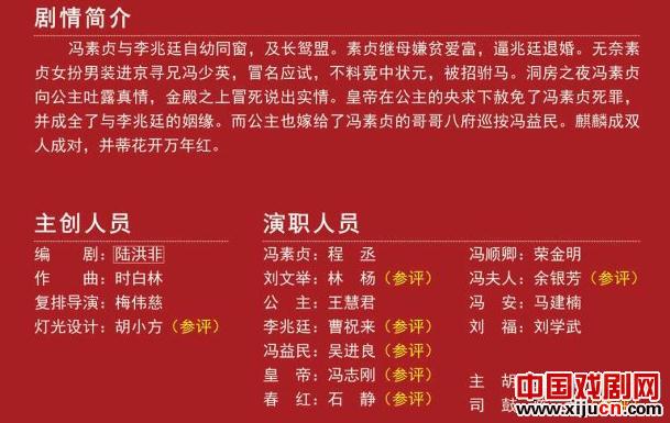 剧情简介:冯素贞与李兆廷自幼同窗,及长鸳盟。素贞继母嫌贫爱富,逼兆廷退婚。无奈素贞女扮男装进京寻兄冯少英,冒名应试,不料竟中状元,被招驸马。洞房之夜冯素贞向公主吐露真情,金殿之上冒死说出实情。皇帝在公主的央求下赦免了冯素贞死罪,并成全了与李兆廷的姻缘。而公主也嫁给了冯素贞的哥哥八府巡按冯益民。麒麟成双人成对,并蒂花开万年红。