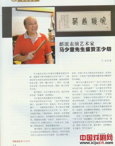 王仁安:麒派表演艺术家马少童先生盛赞王少舫。