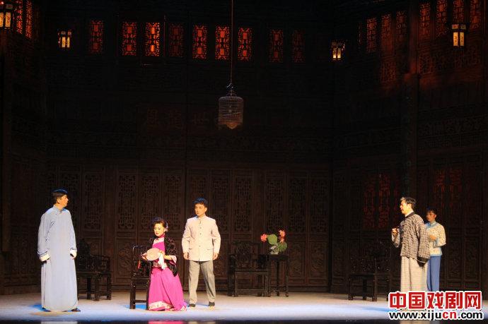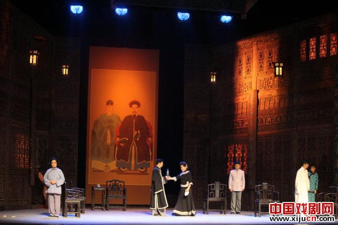 最后,这部戏在舞台调度上,感觉有些散乱。虽然这部戏经过戏曲改编,但是导演在排演时走的还是话剧的路子。包括演员上下场、演员的表演等,尤其是这部戏的道白完全改成了普通话,使这部戏话剧的味道更加浓厚。另外,在这部戏的前几场,在舞台调度时,时上时下,实在搞不懂这样的调度时基于什么样的意图,惟给观众增添了一些散乱的印象。同时,本部戏在开始时经常提到鬼以及鬼屋,如果看过原著容易明白,但是仅仅通过本部戏,鬼的概念感觉很突兀。还有本部戏的舞美整体感觉不错,一所大房子给人一种压抑的感觉,但是在调度时,时开时关,门窗共兼,给人的感觉不是特别的干净凝练。