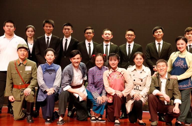 揭牌仪式结束后,全体观众观看了沪剧《回望》。《回望》改编自王愿坚的小说《党费》,该剧以职场精英美娅替长辈赴江西老家扫墓为线索,引出了主力红军长征后,发生在江西苏区的一段可歌可泣的故事。优秀青年演员洪豆豆、金世杰等90后沪剧新秀倾情演出,深深感染了同龄青年,台上台下共同回望先辈的足迹,其意义深远。演出结束后,观众们久久不愿离场,为每一位演员送上了最热烈和真挚的掌声。