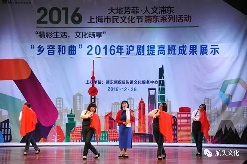 12月26日下午13:00,由航头镇戏曲文化团队沪剧提高班的学员们带来的汇报演出,暨“乡音和曲”2016沪剧提高班成果展演在文化中心剧场观众厅闪亮登场。