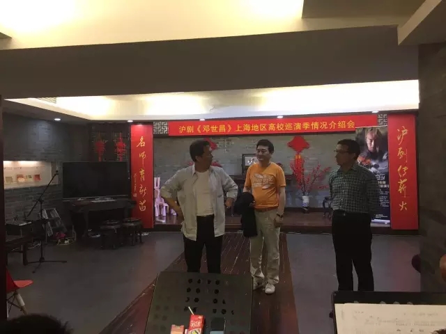 王勤、严蓉、石雪红在排练沪剧《母子岭·手拿一朵红玫瑰》