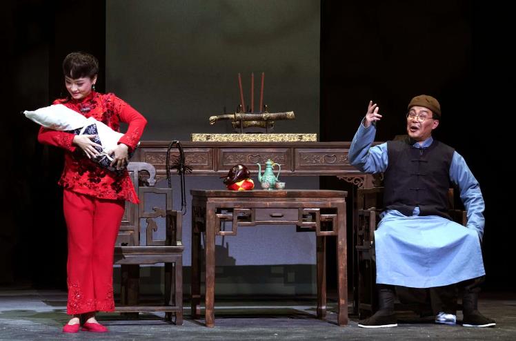 演员用心创作。《原野》是曹禺先生唯一反映农村题材、最深奥最富有争议的剧本。当年,长宁沪剧团敢于挑战此剧确实勇气可嘉,而陈甦萍也因此剧拓展了自身戏路,在表演艺术上有了实质性飞跃,为沪剧舞台奉献了“金子”这样一个别具风采的艺术形象。进入新时代,观众们既想重温经典,更盼重睹甦萍风采,而为了艺术传承,此番甦萍全力让台,让年轻人在更大的舞台上磨炼。我们欣喜地看到,90后的朱桢十分青涩,虽然唱腔尚显稚嫩,但表演自然真切,尤其是与仇虎、大星的对手戏很有气场,演出了一位最美丽、最善良、最刚烈的金子。黄爱忠外形接近仇虎,舞台经验丰富,此番更是多方汲取艺术养料,反复观看杨在葆老师的电影、胡军的话剧录像,从师辈身上捕捉表演闪光点,赋予仇虎性格的立体化,终于,一个狂野不羁、浓情似火,复仇心切又犹豫忏悔的仇虎形象完美地展现在观众面前。焦母这一角色在《原野》中十分吃重,表演难度大,看似瞎子,却是洞察一切的“千里眼”,张燕雯虽然在舞台上塑造过多位母亲形象,但焦母这一形象还是令其遇到不小的挑战,她跳出以往这一形象的“恶”,而是定位于母亲的人性出发,尤其是长达七分钟叙述焦仇两家恩怨的独白,既体现演员的艺术功力,又极具艺术张力,一个封建意识浓厚、性格扭曲而仅有母爱闪光点的焦母形象十分可信、可怜、可憎。王斌饰演的焦大星懦弱、无奈,表现也十分出彩。李恩来甘当绿叶,短短几分钟的出场,便把恶霸阴魂焦阎王生动地展现出来,更好地衬托出焦母、大星的性格轨迹。
