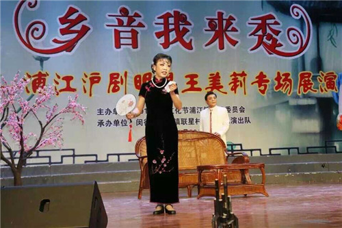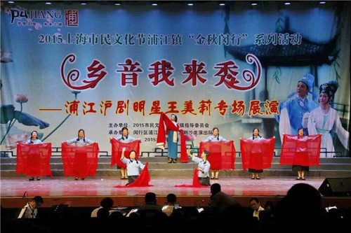 2015年上海市民文化节浦江镇“金秋闵行”系列活动,乡音我来秀——浦江镇沪剧明星王美莉专场展演,昨天下午在浦江影剧院举行。本次活动由2015市民文化节浦江镇指导委员会主办,闵行区浦江镇联星村沪剧沙龙演出队共同参与演出。