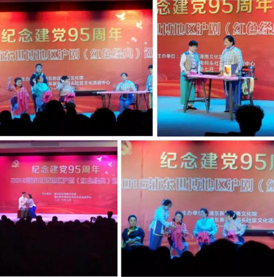 在纪念中国共产党成立95周年、红军长征胜利80周年之际,由浦东新区浦南文化馆联合世博地区六街、镇文化活动中心,共同主办纪念建党95周年 2016浦东世博地区沪剧(红色经典)巡演,于7月19日在南码头路社区文化活动中心剧场拉开帷幕,巡演共有六场。旨在以红色经典沪剧演出的形式,来回顾中国共产党的辉煌历程,讴歌中国共产党的丰功伟绩。