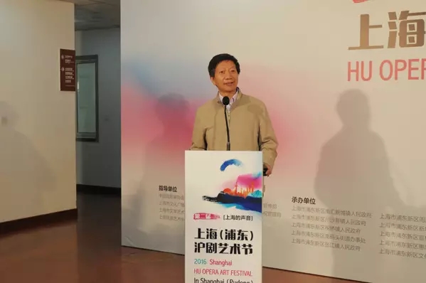 图为艺术节组委会顾问,浦东新区区委常委、宣传部长尤存讲话,他表示第二届沪剧节回到浦东,能使大家回一趟故乡,听一次乡音,温一次乡愁,让我们转过身去,看看走过来的路,这是我们浦东人的魂、我们的根 、我们的乡音,我们的乡愁。