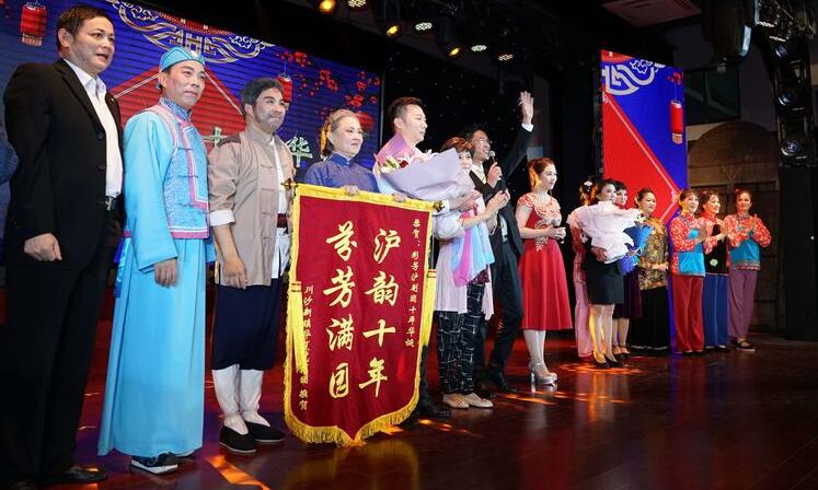 戏剧网浦新特约摄影记者祖忠人、顾昔摄影报道:彩凤飞舞伴白云,芳菲夺目成佳景。由上海彩芳沪剧团主办、上海川沙文联协办彩芳沪剧再谱新章十年闪光之路巡礼庆典演出今天(10月9日)下午,在上海彩芳沪剧团团部举行。上海戏剧家协会、上海浦东新区文化艺术指导中心领导和各界人士以及当地戏迷近千人参加了庆典活动,并观看了彩芳沪剧团庆祝10年华诞专场演唱会。上海沪剧院、上海文慧沪剧团团长王慧莉、新东苑沪剧团沈慧琴、热心沪剧的刘荣先生等单位和个人为彩芳沪剧团10华诞专程送来了花篮。