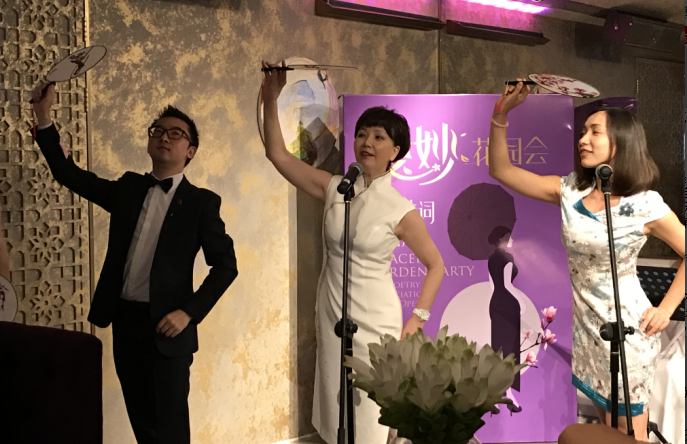 参加“曼妙花园会”首秀的有上海高校师生、北大校友会的成员,还有来自社会各行业白领。他们大部分都是90后新上海人,虽说是初次接触戏曲,但对海派文化却有浓厚兴趣。在“花园会”上,他们应邀穿上旗袍、西装,积极参与各个项目,画团扇,学唱腔,拗身段,笑意融融,乐在其中。