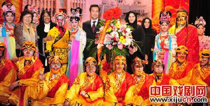 晚会上,由来自中国浙江省京剧团的演员们为远在异国他乡的同胞们、阿联酋市民和部分驻阿外国使节献上了一台别开生面的中国京剧、武术、变脸艺术和歌舞表演。