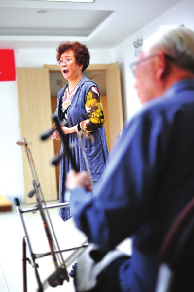 徐素兰(右一)带领学员练唱。
