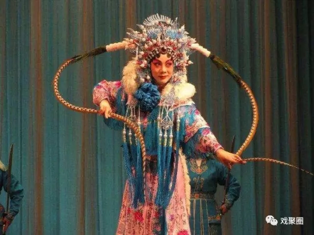 看过京剧《挑滑车》的观众都会欣赏到剧中人物高宠在岳元帅点将发兵前,身穿铠甲、背插四旗(“靠旗”)所做的一段繁复精彩的舞蹈动作,京剧称此为“起霸”或称“起硬霸”。它表示武将出战前整装束带、迎敌待发的情形。