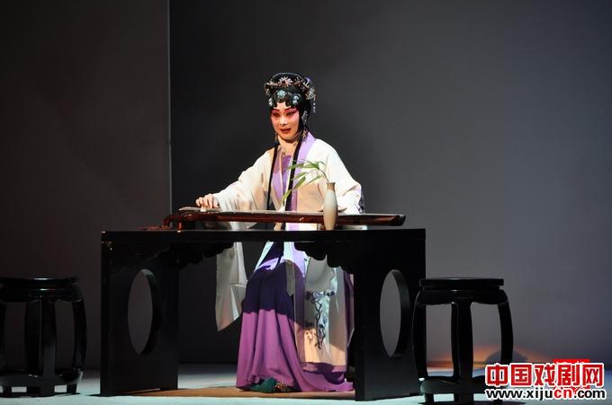 唐婉在赵士程家。面对着盟誓的柳枝,唐婉抚琴倾吐哀怨