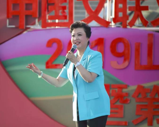 图为著名京剧表演艺术家、国家一级演员、第十一届中国戏剧“梅花奖”获得者、当代张派名家王蓉蓉在“到人民中去”2019山东文艺界5·23文艺志愿服务活动暨第二届农民戏剧展演月启动仪式上演唱京剧《状元媒》《党的女儿》