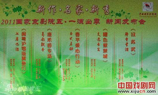 国家京剧院2011“五一演出季”,将于4月22至5月24日在全国多城市开演。此次演出季一改过去“拼盘”旧貌。慈善家李春平也在3月22日的演出季北京启动仪式上,宣布在其有生之年,将每年出资200万资助国家京剧院“五一演出季”。