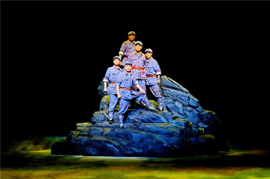 该剧以倒叙的形式开场,从跳崖前的入党仪式切入,之后展开五壮士对这场战斗的回忆。而在回忆的过程当中,又加入闪回等电影手法,将战斗中的紧张场面和五壮士与家人的回忆相结合,充分展示了五位战士丰富的情感世界以及做出生死抉择的心路历程,现场高潮迭起,掌声不断,观众无不被五位壮士的精神所感动。特别是在此次演出中加入的“五壮士自报家门”的情节,一个个年轻的战士带着对生命的渴望与不舍,做出牺牲的坚定与决绝,令观众动容落泪。该剧还采用多媒体与全息影像技术,真实再现了烽火连天的战争场面,让现场观众如身临其境。