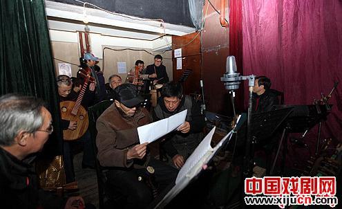 图为剧团演奏员正在排练,他们的演出费是人均100元(场)。