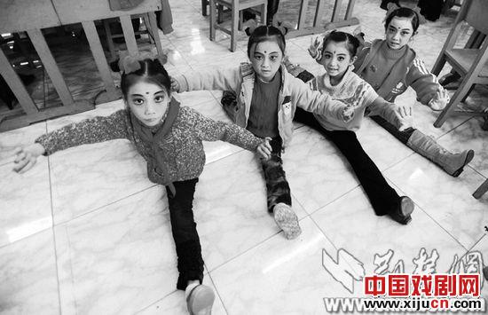 临时化妆间里,十几名孩子和几位老师各自忙碌着。有的在调试录音,有的在练嗓子,有的在专业老师的指导下化妆,有的在空地上劈叉练功。给孩子送雨具的家长陪在化妆间,协助孩子练功或督促做家庭作业……从下午2时开始一直到晚上6时,30名小演员不仅轮流兼顾了上课、考试,化妆、行头道具等复杂的准备,而且当天的家庭作业也都全部完成。