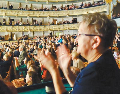 两个小时的演出,几乎无人退场,观众自始至终聚精会神。当大幕拉下,伊莲娜一家和其他观众纷纷站起,长久鼓掌。“非常喜欢!服饰、音乐、化装、动作,一切都非常美。太感谢中国演员们的到来了!”更有不少俄罗斯观众,得知我们是中国记者时,自发围上来争着表示:“太精彩了!”“没看够,下次演出什么时候?”