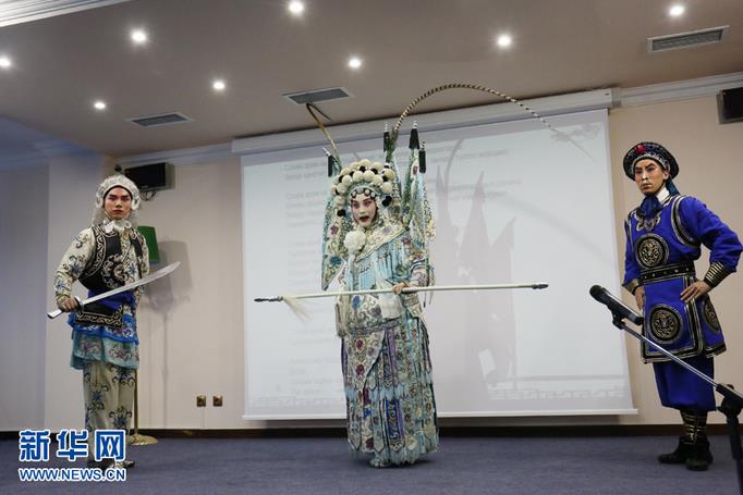 新华网阿斯塔纳9月12日电 (记者 周良)不少哈萨克斯坦人虽然听说过京剧,但真正能有机会欣赏京剧艺术的当地人屈指可数。10日上午,京剧艺术讲座在哈萨克斯坦首都阿斯塔纳的科学图书馆礼堂举行。由袁慧琴领衔的中国国家京剧院艺术家代表团在这里举办了一场别开生面的京剧艺术讲座,给当地观众近距离认识和了解中国国粹提供了一次难得的机会,吸引了大量戏剧院校师生和戏剧爱好者。