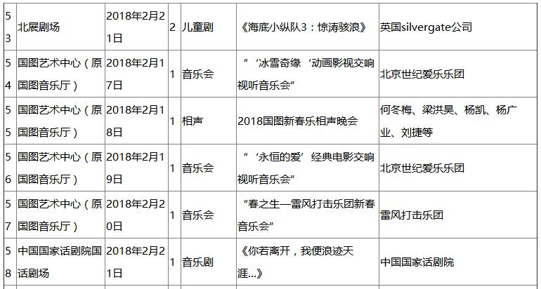 拥有67年历史的中国电影乐团将在国家大剧院音乐厅上演“新春交响音乐会”,为观众带来别样的浪漫,让耳朵更纯净、让心绪更从容。北京剧院、国图艺术中心等剧场为小朋友精心准备了音乐会,包括《狮子王》《冰雪奇缘》等知名电影剧目,将带给大家一个奇幻的美好夜晚。