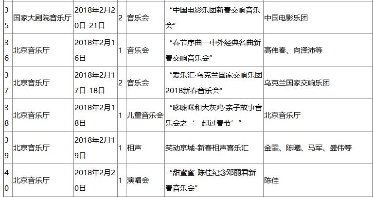 整个假日期间,北京音乐厅将有多场音乐会上演,初一将上演“春节序曲—中外经典名曲新春交响音乐会”,由著名指挥家高伟春先生和数十位国内一流的演奏家,用经典交响乐为观众奉上一台精心策划的“合家欢”音乐盛宴!柴可夫斯基指挥过的交响乐团——乌克兰国家交响乐团接力迎新年,为观众准备了2场世界经典、佳作荟萃的迎新春音乐饕餮大餐。接下来,“哆唻咪和大灰鸡•亲子故事音乐会之‘一起过春节’”、“天空之城—久石让宫崎骏精选视听音乐会”将先后上演。