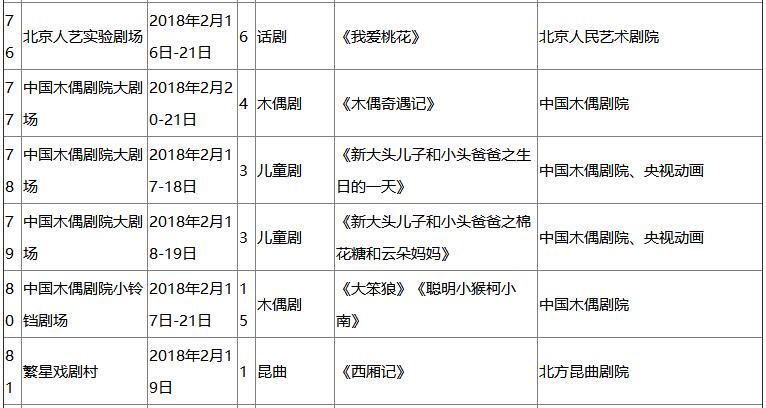 瑞狗贺岁迎新春,好戏连台过大年。春节将至,浓浓的年味正弥漫飘洒京城的大街小巷。记者从北京市文化局获悉,整个假日期间(2018年2月15日-2月21日),各文艺院团准备了传统戏曲、音乐会、儿童剧、话剧等丰富多彩的表演,将在全市50家专业演出场馆演出398场,为首都市民带来一份“演出大餐”。