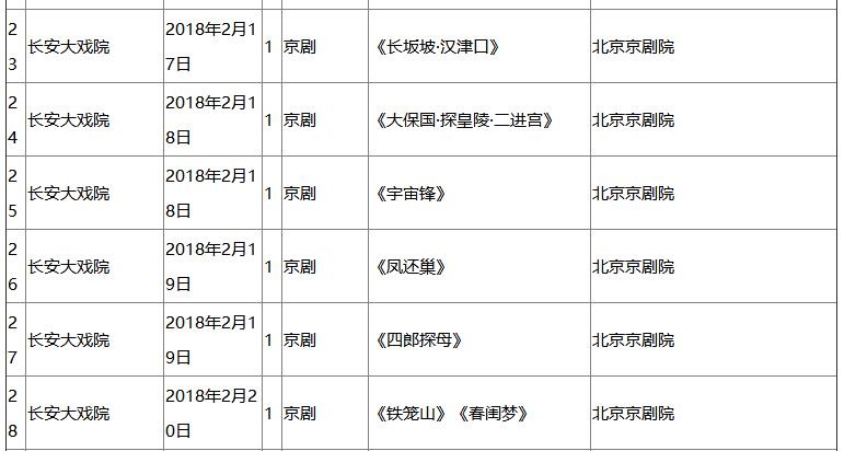 国家京剧院将在梅兰芳大剧院献上传统经典京剧《龙凤呈祥》《梅尚程荀》与现代京剧《红灯记》等剧目,让戏迷朋友们乐享文化盛宴。北京京剧院则将在国家大剧院戏剧场给戏迷朋友带来京剧《状元媒》《广泰庄》《锁麟囊》《胭脂宝褶》选段;精彩大戏同时在长安大戏院上演,北京京剧院将在此带来为期6天、每天2场的经典国粹华章,《锁麟囊》《四郎探母》《白蛇传》等经典剧目接连上演,著名京剧表演艺术家迟小秋、李宏图、朱虹等将轮番登台。