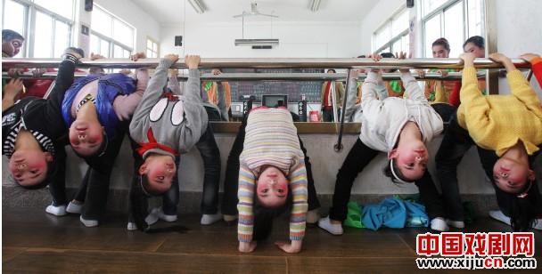 在操场上、练功房,经常可见这些孩子练声、练功的忙碌身影。因为京剧对基本功要求非常严格,"唱、念、做、打"样样都要扎实。娃娃们下腰、劈叉、练大跳,练眼神,投入地挑战自己。