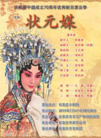7月21日19:30,京剧名家姜亦珊将以张派经典剧目《状元媒》亮相石家庄大剧院,为此次演出季增添了浓墨重彩的一笔。