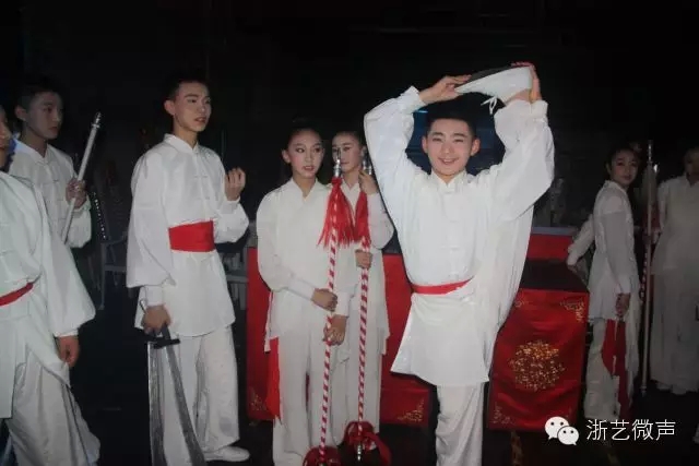 “代字辈”2013年在浙艺入学,一共招收了50人,其中演员40人,乐队10人,学制6年。经过两年半学习,已是兰芽初绽。昨晚乐队学员也上台展示了铿锵有力的戏曲打击乐。
