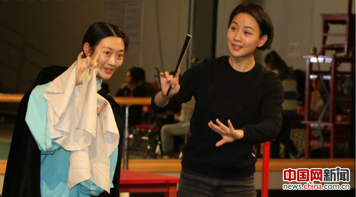 翁佳慧与中国戏曲学院排练昆剧《楼会》。 中国网记者 尚阳 摄