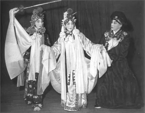 《白蛇传》中俞振飞饰许仙,梅兰芳饰白素贞,梅葆玖饰素青蛇