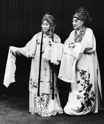 1960年昆剧《游园惊梦》中梅兰芳(左)饰杜丽娘,俞振飞(右)饰柳梦梅,这是两位大师最后一次同台