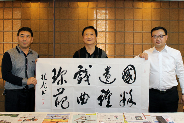 会后,天津市江苏商会与天津市昆研会互赠了礼品,参会人员参观了位于苏商科技大厦18层的“江苏人家书画院”,执行院长陶桂森当场挥毫,将书法作品“国粹遗雅,戏曲珍葩”赠予天津市昆曲艺术研究会。