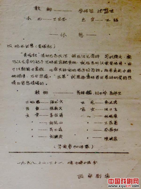 55年前的这场演出,共有四出小戏。洪雪飞在《彩毫记》中饰演杨贵妃;在《青冢记》中饰演宫女。