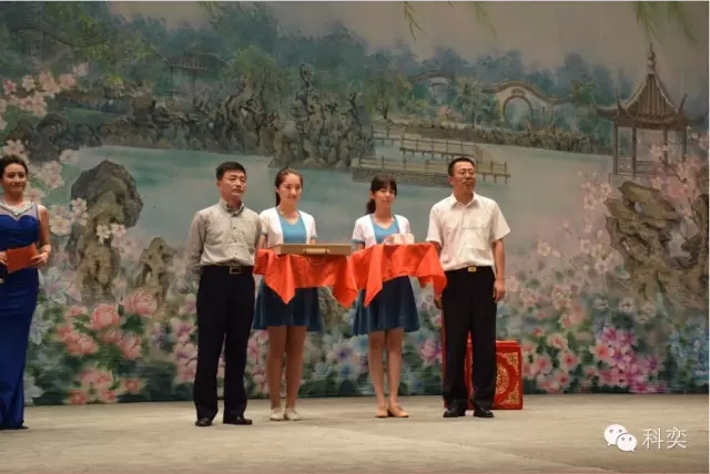 之后在隆重的音乐声中,上海昆剧团与陕西科技大学互相赠送礼品。