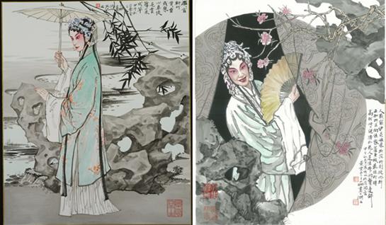 罗小珊亦然,她取昆曲《牡丹亭》之扮相,经由艺术加工,在中国画的笔下求得另一番神韵——既关乎原作,又关乎自己。