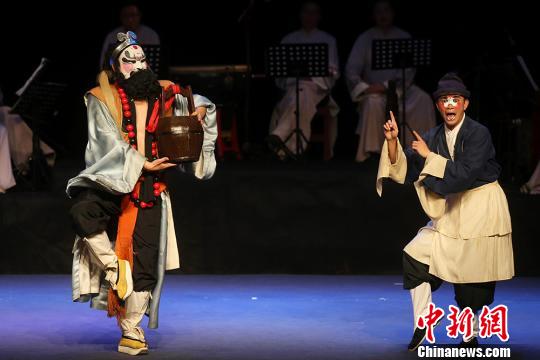 著名昆曲表演者曹志威(左)和钱伟(右)表演昆曲名段《虎囊弹.山门》。