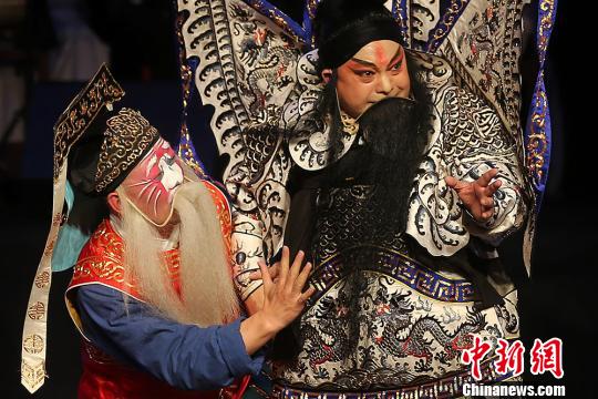 昆曲名角柯军(右)和李鸿良(左)表演昆曲名段《桃花扇.沉江》。