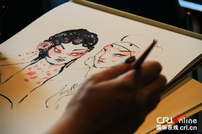 剑桥当地的艺术家以昆曲表演为灵感现场作画。